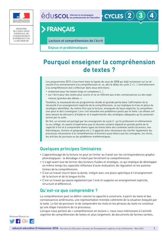Eduscol C3 Pourquoi Enseigner Comprehension