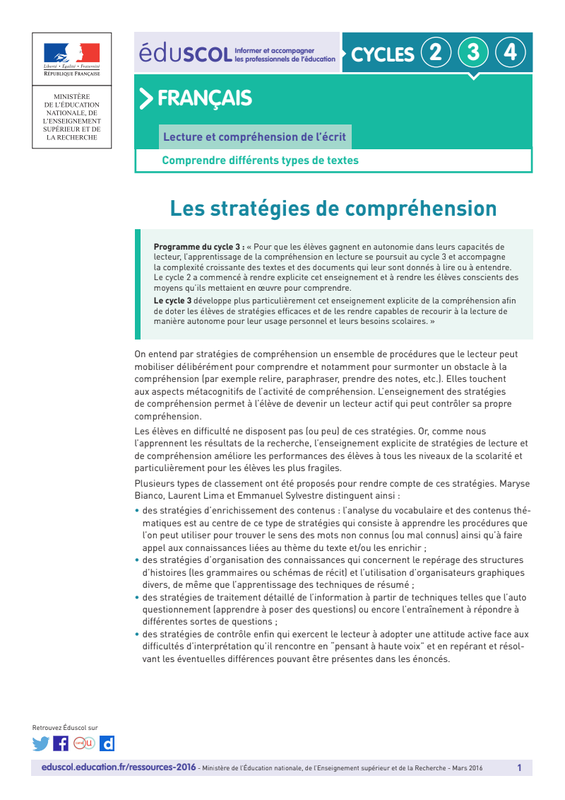 Eduscol C3 Strategies Comprehension