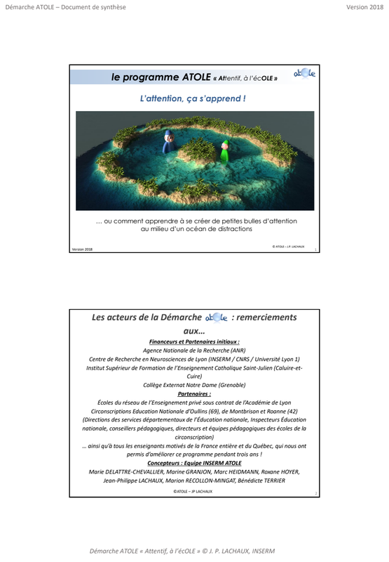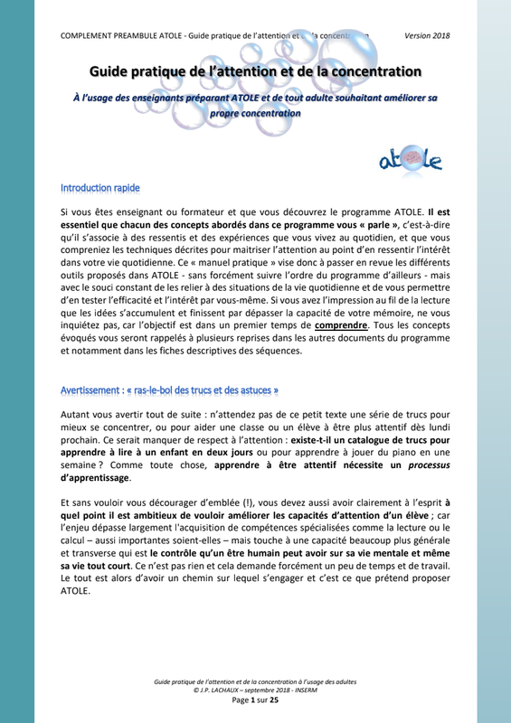 JEAN-PHILIPPE LACHAUX ATOLE Apprendre l’ATtention à l’écOLE Guide de l’enseignant·e : 10 séquences clés en main