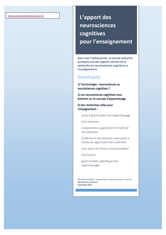 Apport Des Neurosciences Cognitives Bénédicte Dubois