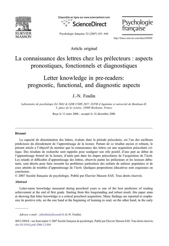 Automatisation De La Connaissance Des Lettres 2008