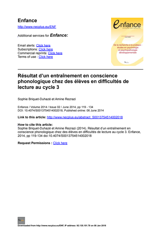 Sophie Briquet Duhazé Enfance 2014 Entrainement Phono En Cycle 3