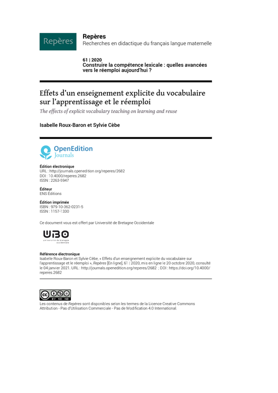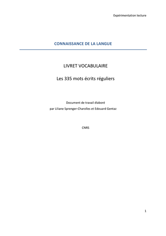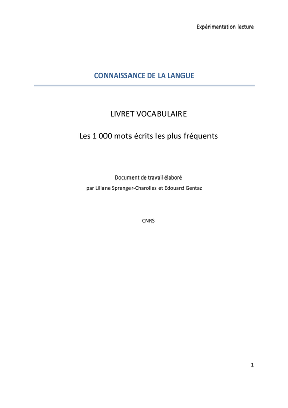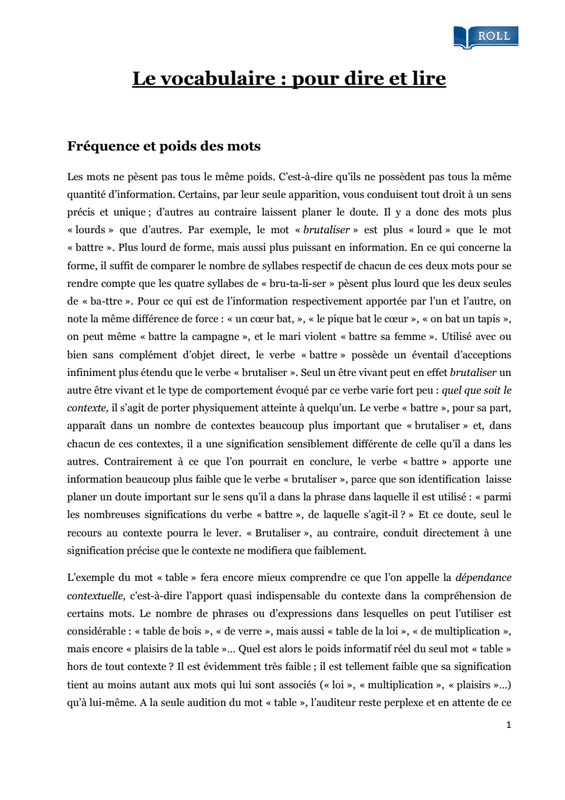 Le Vocabulaire Pour Dire Et Lire Bentolila