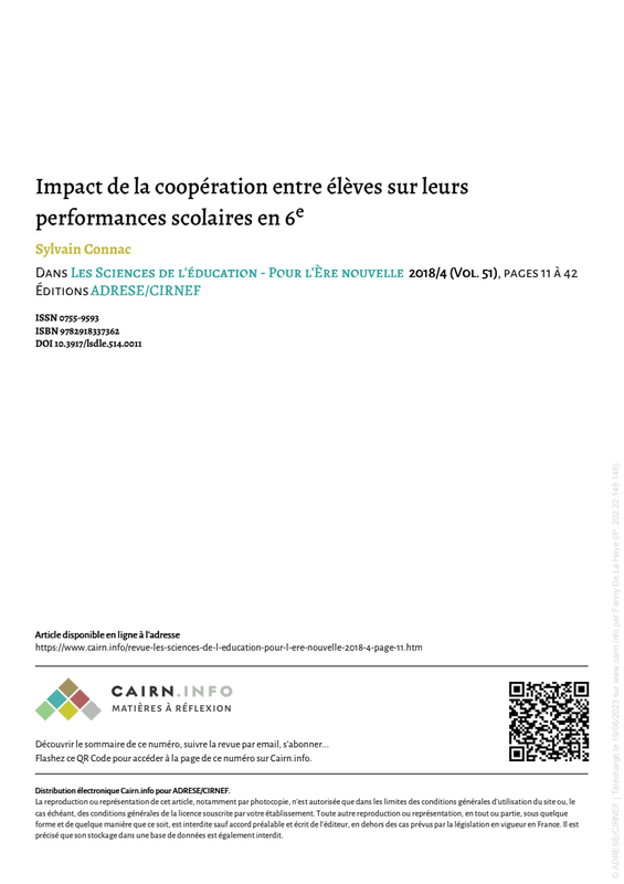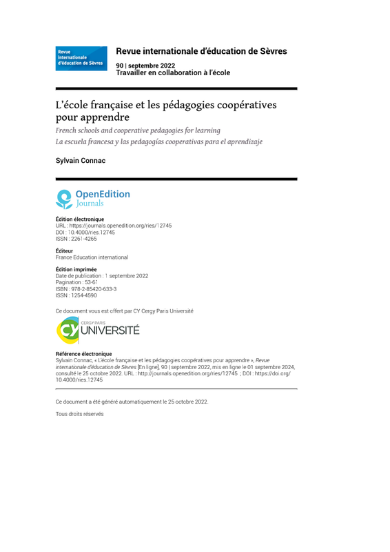 L'École Française Et Les Pédagogies Coopératives Pour Apprendre S. Connac Revue De Sèvres 90