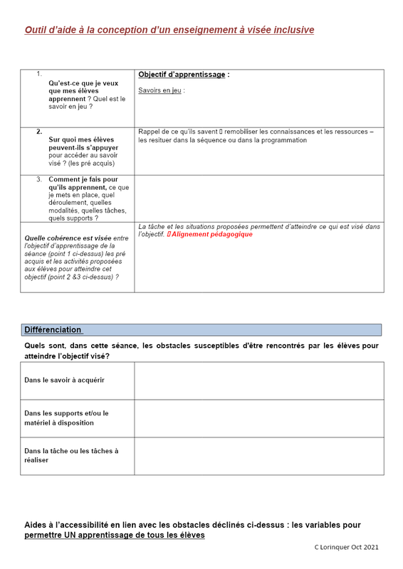 Outil D'Aide À La Conception D'Un Enseignement Inclusif.D